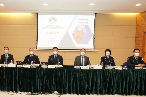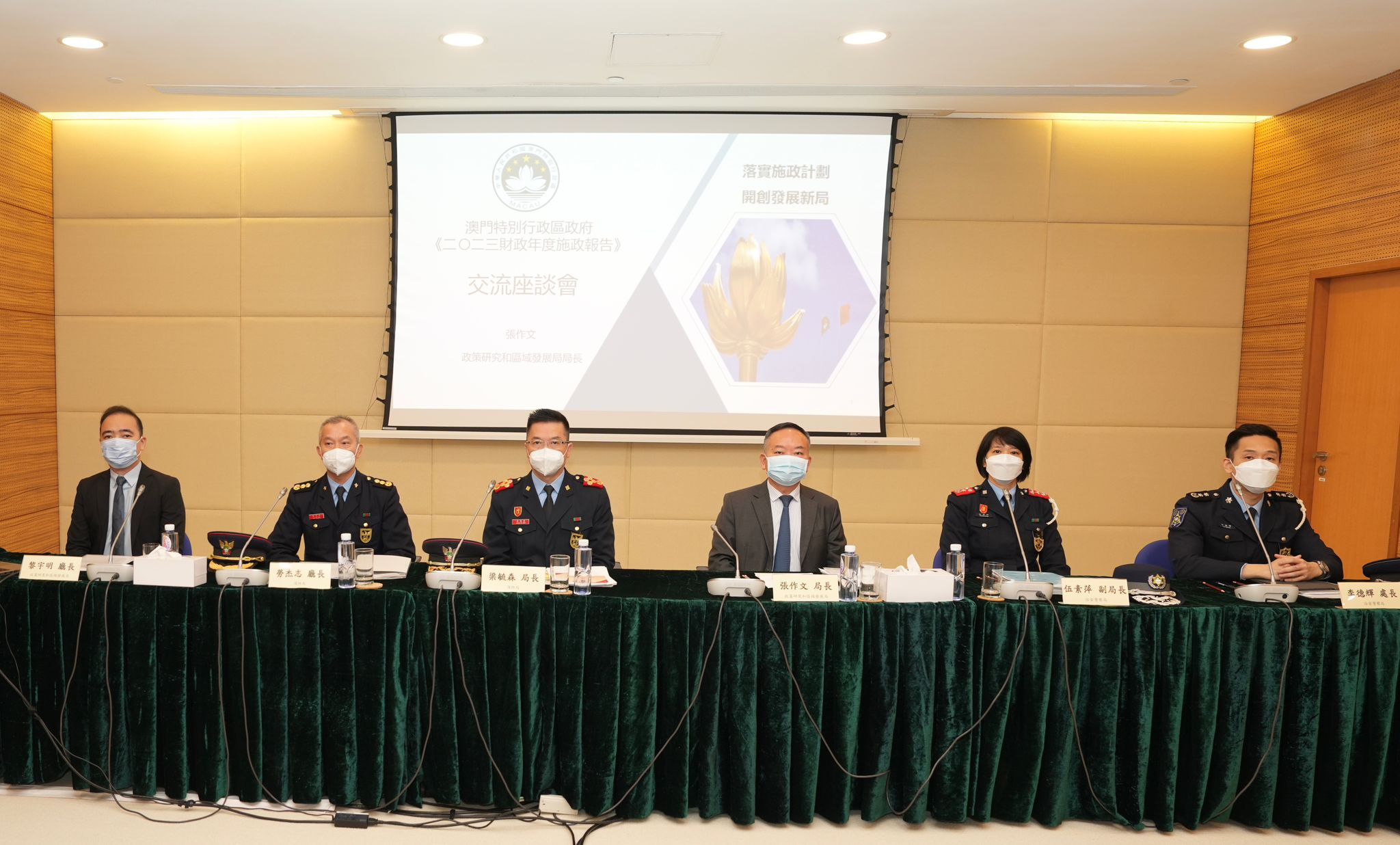 Com o intuito de fomentar os trabalhos de promoção do Relatório das Linhas de Acção Governativa (LAG) e as prioridades das LAG do Governo da Região Administrativa Especial de Macau (RAEM) para os diversos sectores, bem como, de levar a compreender, de forma mais aprofundada, os objectivos da acção governativa e as orientações políticas do Governo da RAEM, este está a realizar, durante cinco dias consecutivos nesta semana, uma série de encontros de intercâmbio sobre o “Relatório das LAG para o ano financeiro de 2023” e as prioridades das LAG. Hoje, no encontro, foi feito um esclarecimento das prioridades do Relatório das LAG e das linhas mais relevantes da área da segurança, tendo-se, também, registado uma proveitosa articulação com as personalidades convidadas da sociedade.