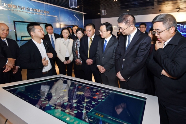 扶贫工作会议前,谭俊荣、姚坚一行到贵州大数据综合实验区展示中心考察,听取介绍贵州大数据产业发展情况汇报,瞭解大数据产业发展目标、举措及成效等,并观看了FAST“中国天眼”工程短片。