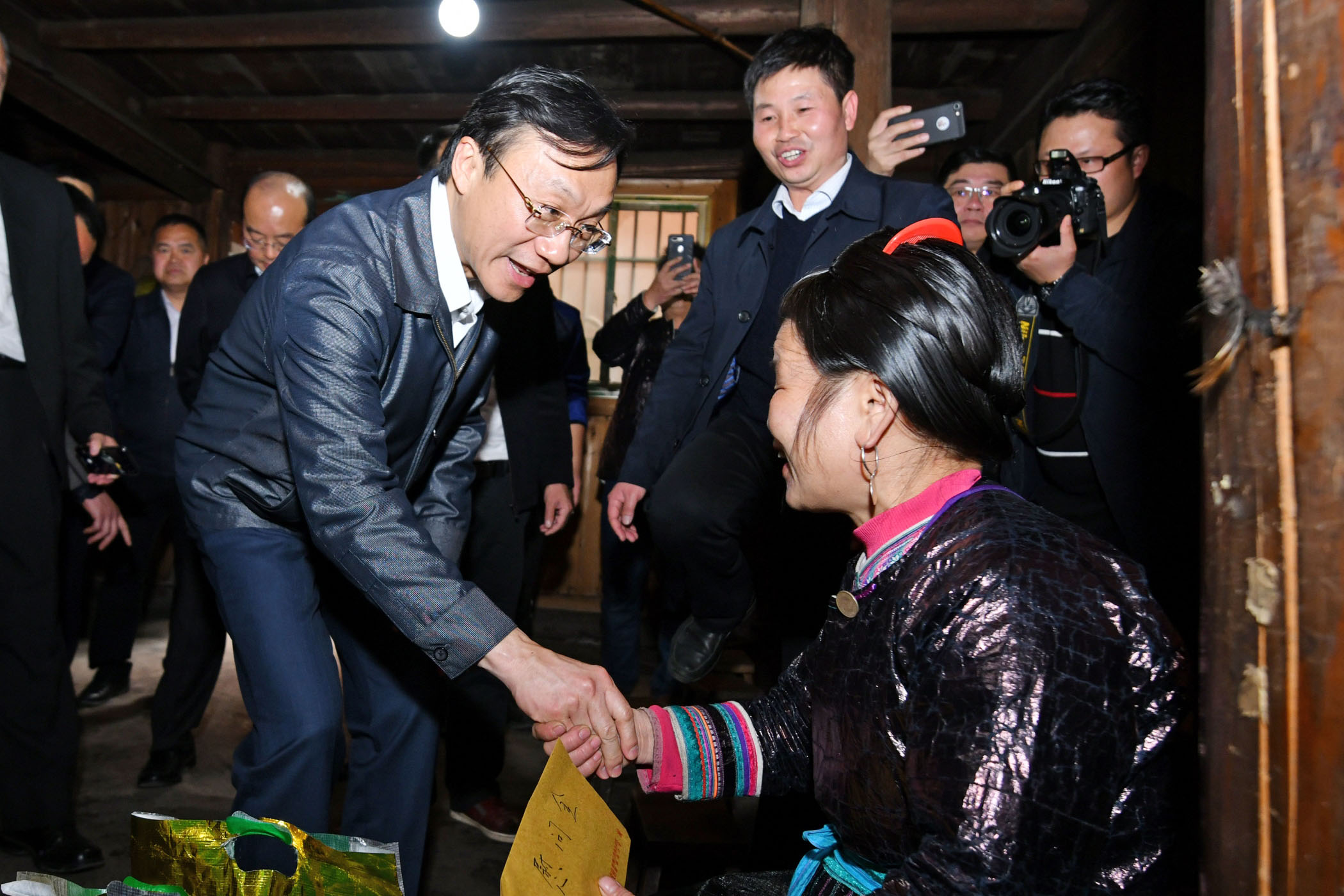 澳门代表团随后前往占里村调研脱贫攻坚工作情况。占里民风淳朴,创造了建国以来“治安案件为零” 和“人口自然增长率几乎为零”的两项纪录,被誉为“中国人口生育文化第一村”,是全国典型传统村落村寨。占里村共有 8 个村民组 193 户806 人,建檔立卡贫困户 49 户 160 人,目前已脱贫 35 户 134 人。谭俊荣、姚坚一行考察占里村的人文资源,瞭解基层医疗卫生服务,赞赏村寨美食。谭俊荣、姚坚并看望、慰问因病致贫的贫困户,希望贫困户家人早日康复、身体健康、生活愉快,家庭早日脱贫。