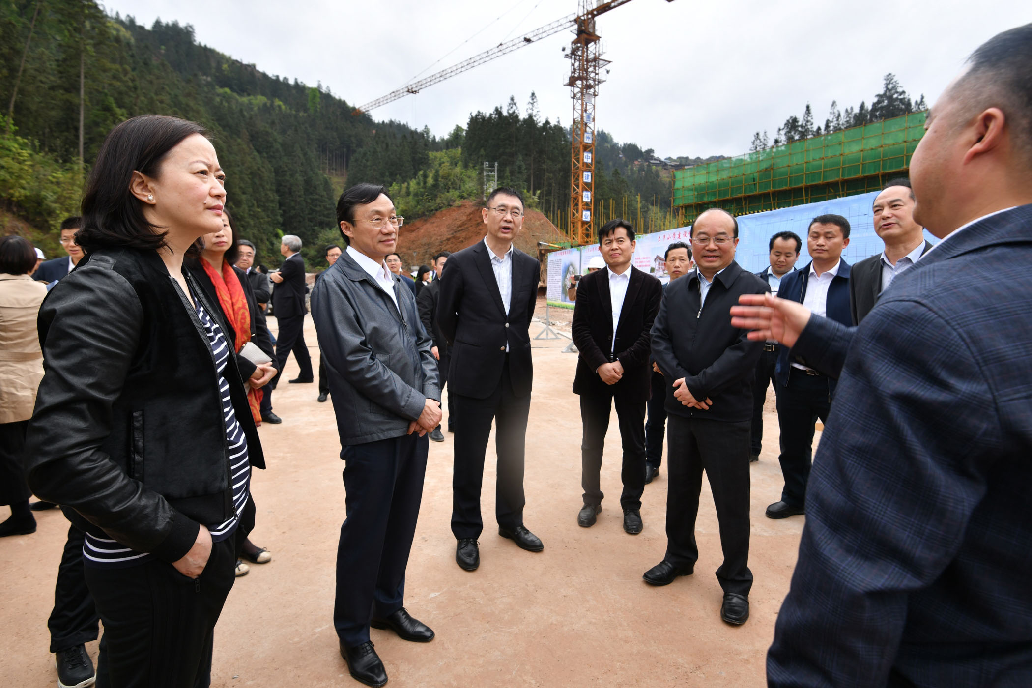 谭俊荣、姚坚一行首先考察干团(美娥)小学教学楼项目建设进展情况,并举行奠基仪式。奠基仪式上,黔东南州委书记桑维亮、中国建筑工程(澳门)有限公司董事长张海鹏分别致辞。按照《从江县贯洞镇美娥小学综合教学楼援建意向协议》,由澳门中国企业协会在美娥安置点捐建综合性学校。该校办学规模 18 个教学班,容纳学生人数 800 人,计划总投资约 3549 万元。项目建成后能有效解决干团、友团、弄成 3 个行政村及美娥小区搬迁点搬迁户5000余人的子女入学难题,真正使易地扶贫搬迁移民“搬得出、稳得住、能致富”。