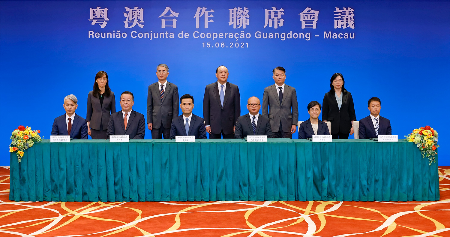 會上,行政長官、馬興瑞省長共同見證了《粵澳食品安全工作交流與合作協議》、《粵澳標準質量和檢測認證工作合作協議》、《關於在粵澳資企業經濟核算的合作協議》、《粵澳旅遊合作協議》、《“粵港澳大灣區大學生就業實習雙選會”項目合作框架協議》、《粵澳中醫藥交流合作框架協議》等合作協議簽署。