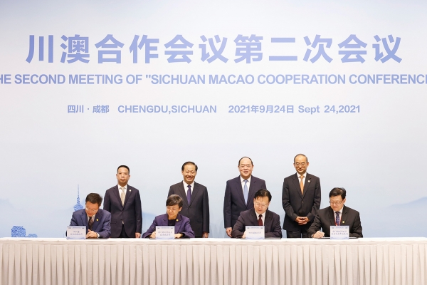 《四川與澳門加強旅遊合作備忘錄》由旅遊局及四川省文化和旅遊廳簽署,進一步促進川澳旅遊交流合作,促進兩地旅遊產品互補和市場互動,實現資源分享、優勢互補、市場共拓、資訊共用。由教育及青年發展局和四川省教育廳簽署的《“澳門青年學子四川感知行”活動合作備忘錄》,確定了2022至2024年續辦此參訪活動,每年一期,以加深澳門青年學生對四川的認識,搭建川澳青年友誼橋樑。