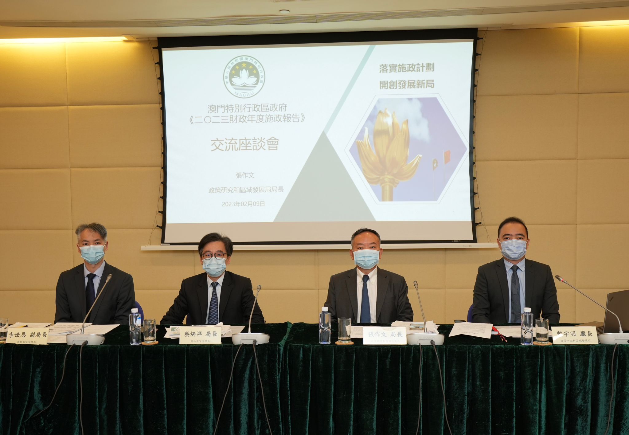 為進一步加強特區政府施政報告及施政方針重點的宣傳工作,讓社會各界更深入了解特區政府施政目標和政策方向,特區政府本周一連五日舉行《2023年財政年度施政報告》及施政方針重點系列交流座談會。今日交流座談會對施政報告重點及社會文化範疇的重點內容進行解說,並與受邀的社會人士進行互動交流。