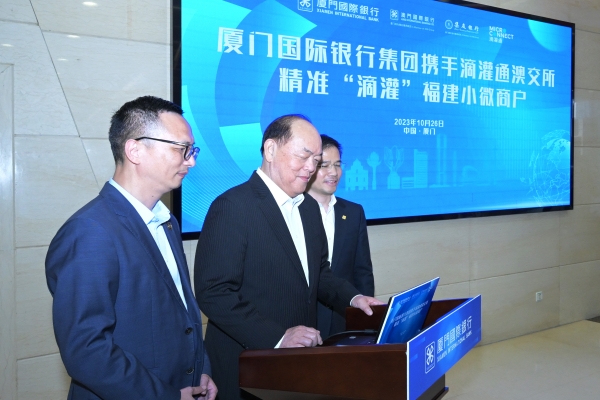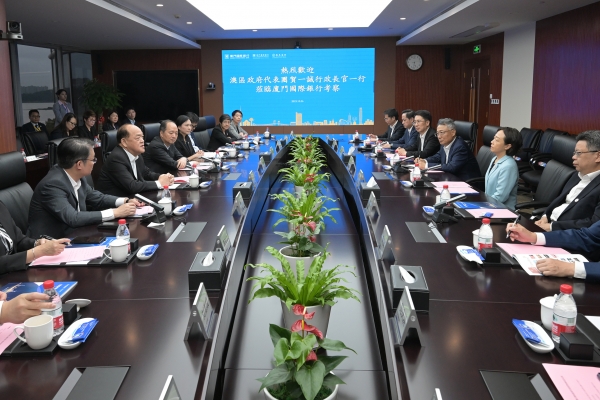 其後,行政長官到廈門國際銀行考察,出席廈門國際銀行集團攜手滴灌通澳交所精準“滴灌”福建小微商戶啟動儀式,以及與銀行領導層座談,就發展現代金融產業交流意見。