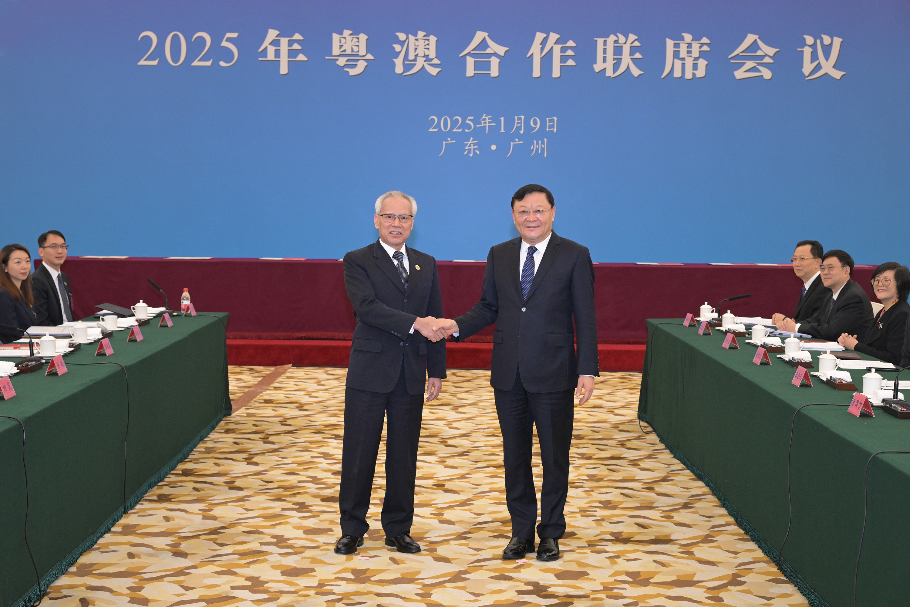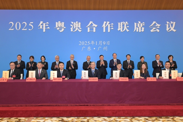 2025年粵澳合作聯席會議今(9)日在廣州舉行,行政長官岑浩輝和廣東省省長王偉中分別率領兩地政府代表團出席會議。雙方總結肯定在粵澳兩地政府共同努力下,橫琴粵澳深度合作區的建設取得重要階段性成果,粵港澳大灣區各項建設工作紥實推進,兩地攜手推動粵澳合作邁向更高水平、更深層次、更多領域的新階段。展望未來,雙方要從國家發展戰略全局出發,更好發揮“一國兩制”制度優勢,深度整合粵澳兩地優質資源,讓粵澳合作的果實更為豐碩靚麗。