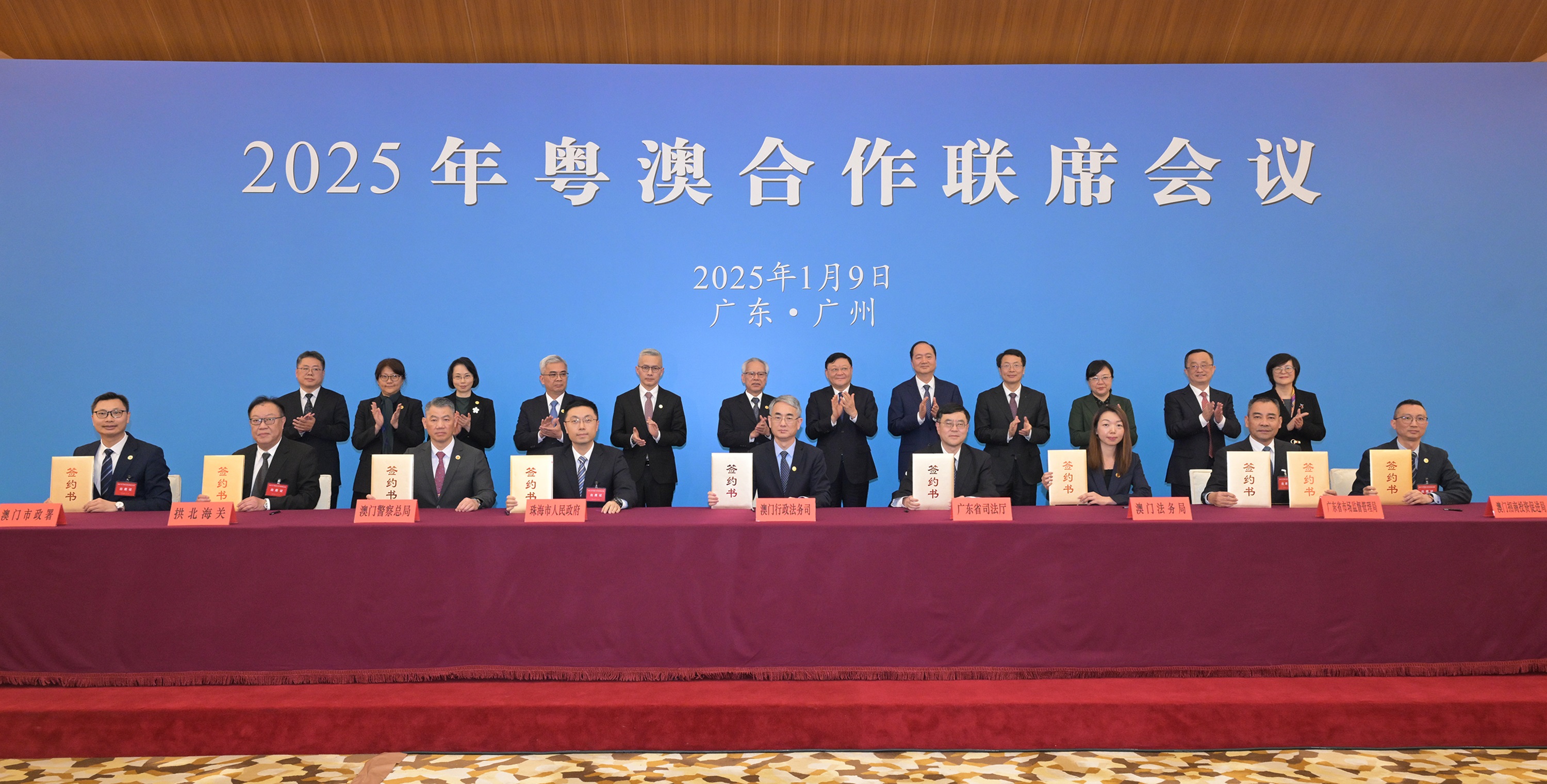 會議後,岑浩輝和王偉中等共同見證了兩地相關部門代表簽署《廣東省司法廳與澳門特別行政區政府行政法務司法律合作安排》;《珠澳“醫院-醫院”點對點跨境轉運行政部門備忘錄》;《廣東省市場監督管理局與澳門特別行政區政府法務局合作備忘錄》;《拱北海關與澳門特別行政區政府市政署關於進口國外水果檢驗檢疫監管合作備忘錄》;《廣東省市場監督管理局與澳門特別行政區招商投資促進局合作協議》的儀式。